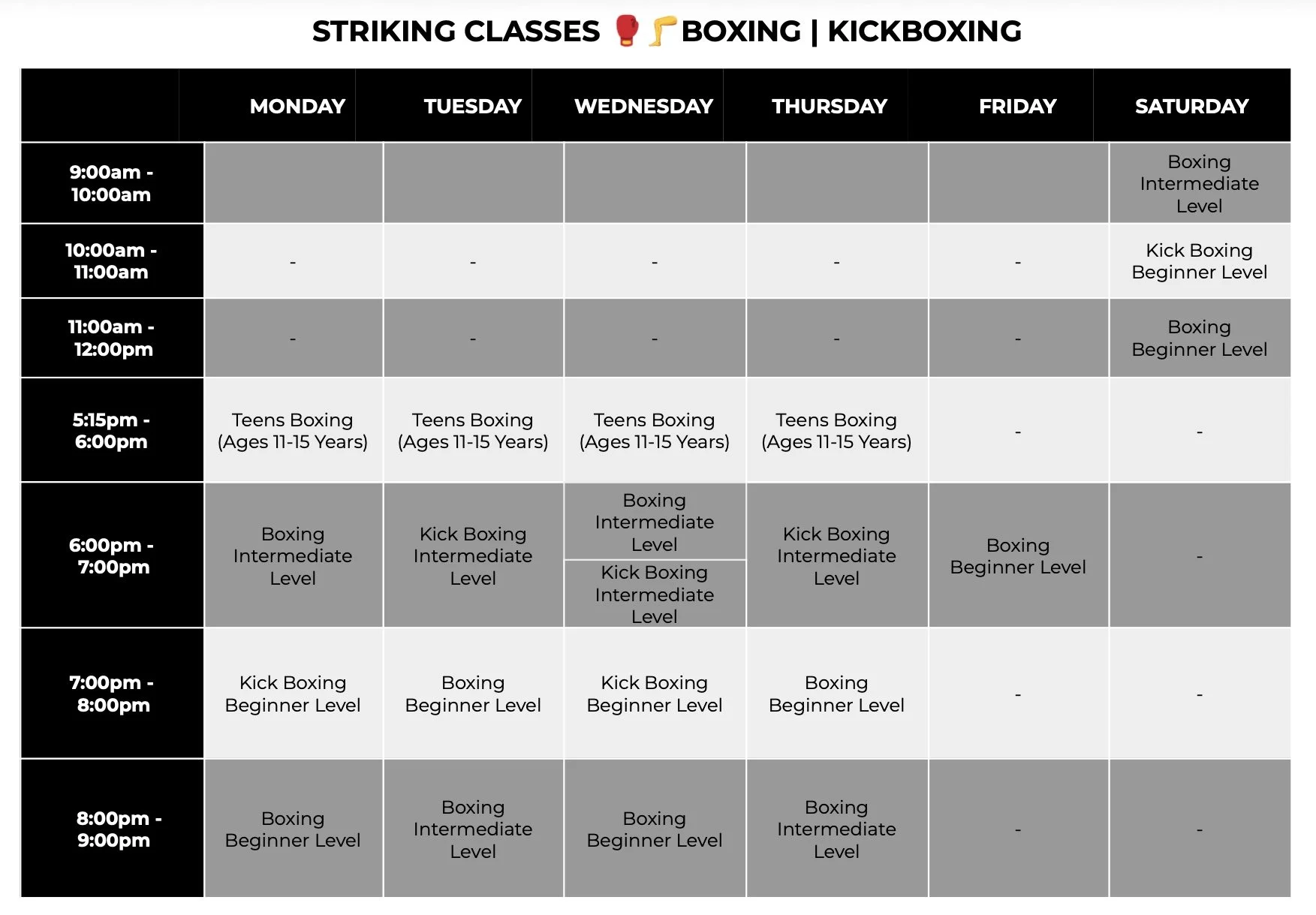 🥊 STRIKING CLASS SCHEDULE FAQs